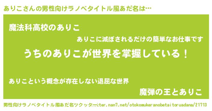 | ヘコむあだ名 | 『ありこ(小並感)』『ありっふぃ~』 |