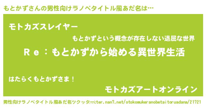| 女子向けラノベタイトル風あだ名 | 『もとかずストレイドッグス』 |