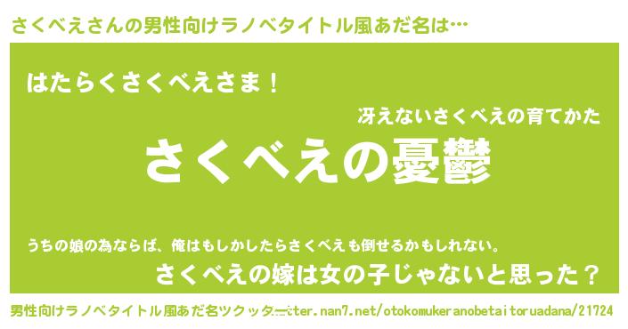 さくべえさんの男性向けラノベタイトル風あだ名をツクッター!