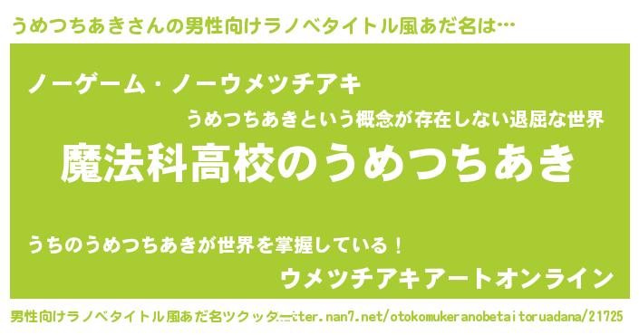 うめつちあきさんの男性向けラノベタイトル風あだ名をツクッター!