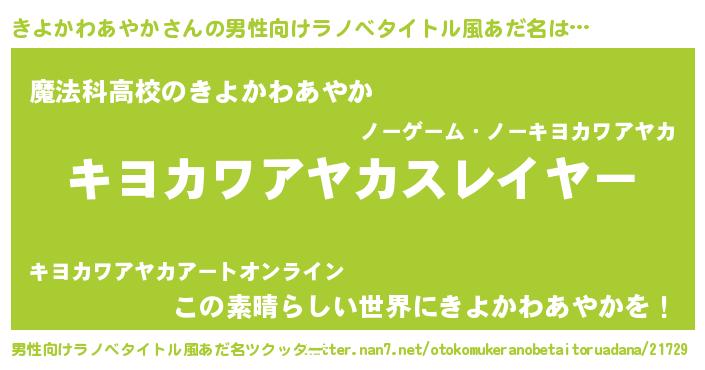 | 肩書あだ名 | 『きよかわあやか大佐』 |