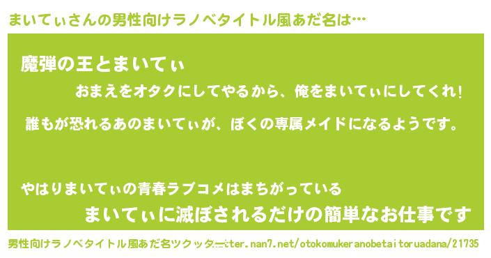 | ヘコむあだ名 | 『まいてぃ(笑)』『つくし』『まいを』 |