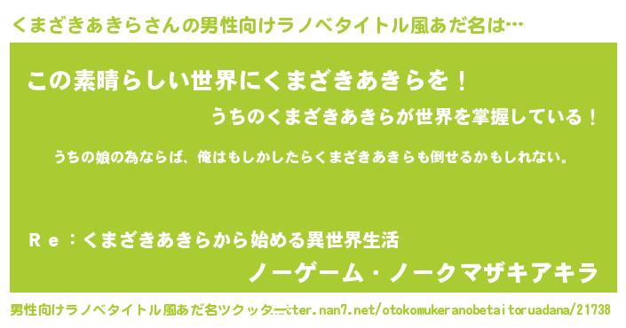| 女子向けラノベタイトル風あだ名 | 『くまざきあきらの婚約者』 |