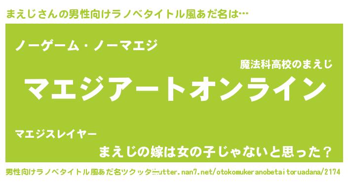 | 胡散臭い通販商品みたいなあだ名 | 『モテモテ間違いなしブレスレット…その名も「まえじ」』 |