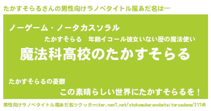 | 意味不明あだ名 | 『自称たかすそらる』 |