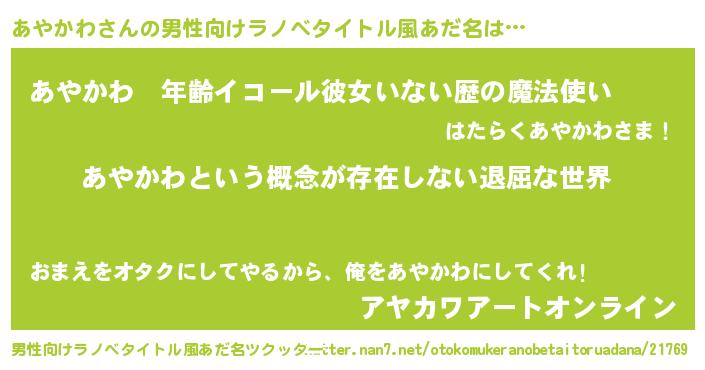 | ヘコむあだ名 | 『あやかわ(笑)』『あやふぇ~』 |