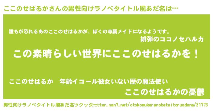 | ヘコむあだ名 | 『ここのせはるか(震え声)』『ここにゅー』 |