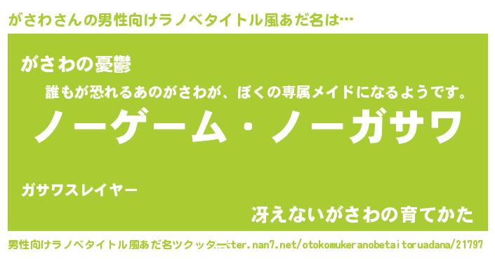 | 女子向けラノベタイトル風あだ名 | 『がさわ恋絵巻』 |