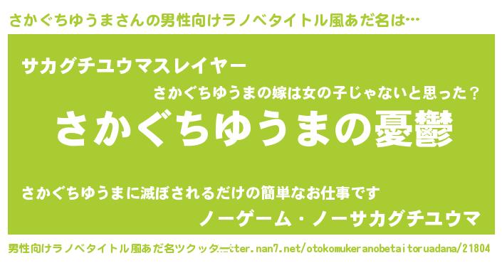 | 女子向けラノベタイトル風あだ名 | 『(仮)さかぐちゆうまのやんごとなき事情』 |
