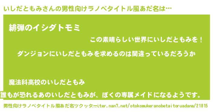 | 女子向けラノベタイトル風あだ名 | 『いしだともみは平凡を望む』 |