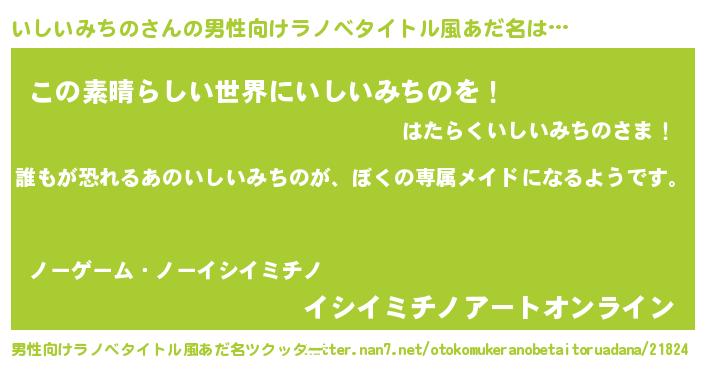 | 女子向けラノベタイトル風あだ名 | 『異世界でカフェいしいみちのを開店しました。』 |