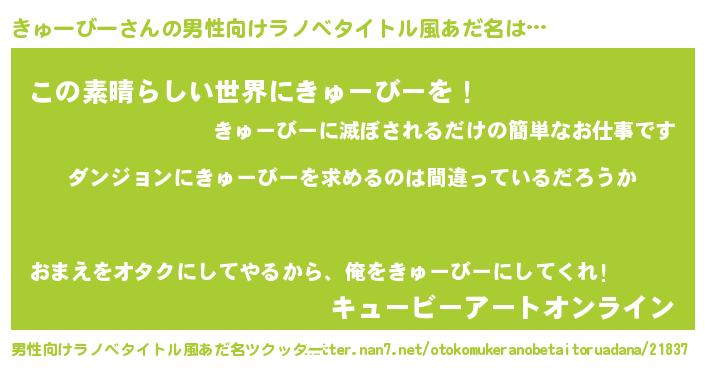 | 女子向けラノベタイトル風あだ名 | 『きゅーびーの卵を拾いまして』 |