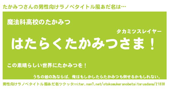 | ファンタジー風あだ名 | 『ゼタカトゥ』『エターナルタカミツー』 |