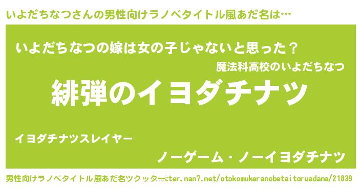 | 女子向けラノベタイトル風あだ名 | 『シンデレラいよだちなつ家の靴箱館』 |