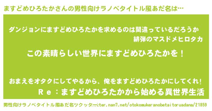 | 胡散臭い通販商品みたいなあだ名 | 『あなたにだけ特別に提供する限定10本のレアな日本酒…その名も「ますどめひろたか」』 |