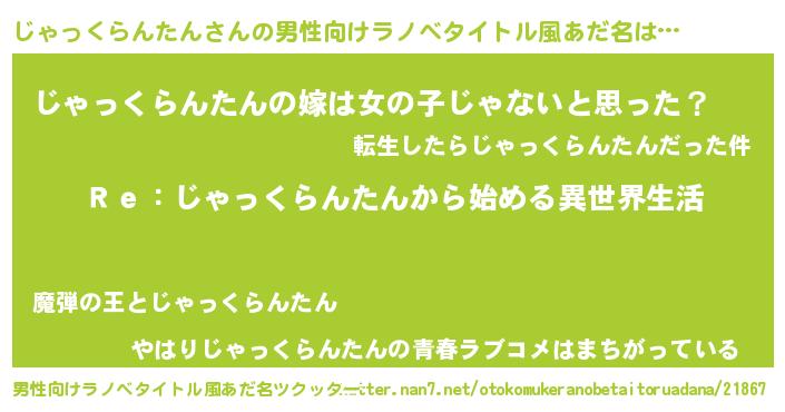 | 意味不明あだ名 | 『自称じゃっくらんたん』 |