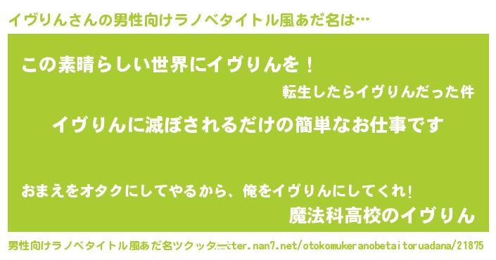 | ヒーロー風カッコイイあだ名 | 『仮面イヴダー』『最強戦士イヴリン』 |