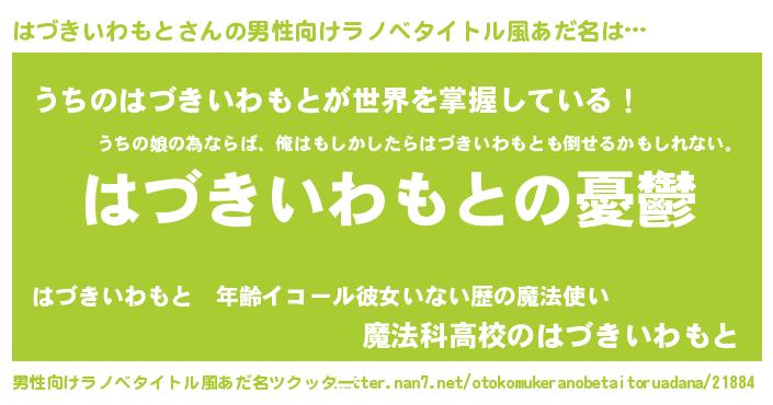 | 女子向けラノベタイトル風あだ名 | 『(仮)はづきいわもとのやんごとなき事情』 |