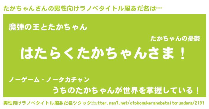 | 意味不明あだ名 | 『住所不定無職たかちゃん(53歳)』 |