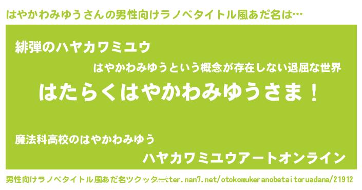 | 女子向けラノベタイトル風あだ名 | 『首の姫と首なしはやかわみゆう』 |