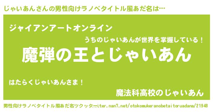 じゃいあんさんの男性向けラノベタイトル風あだ名をツクッター!