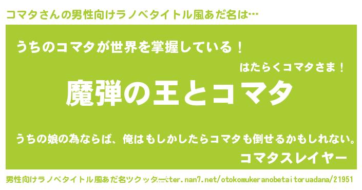 | ヒーロー風カッコイイあだ名 | 『仮面コマダー』『ウルトラコマタマン』 |