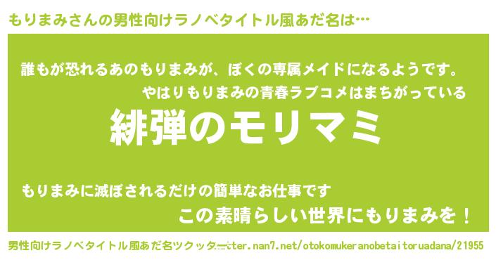 | 意味不明あだ名 | 『永久保存もりまみ』 |