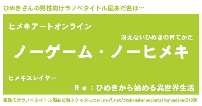 | 女子向けラノベタイトル風あだ名 | 『ひめき恋絵巻』『闇のひめき』 |