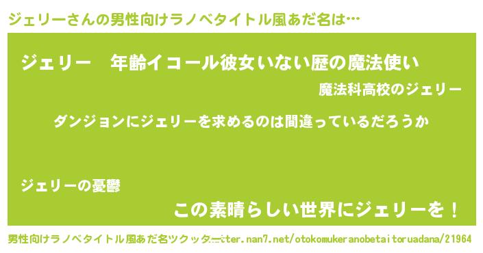 | 女子向けラノベタイトル風あだ名 | 『ジェリーの卵を拾いまして』 |