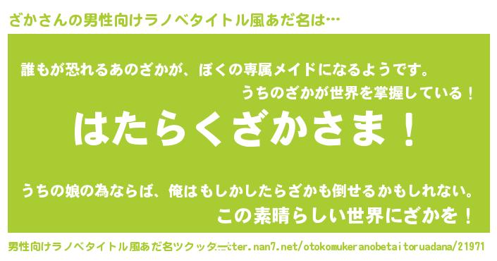 | 胡散臭い通販商品みたいなあだ名 | 『来世でも幸せになれる水素水…その名も「ざか」』 |