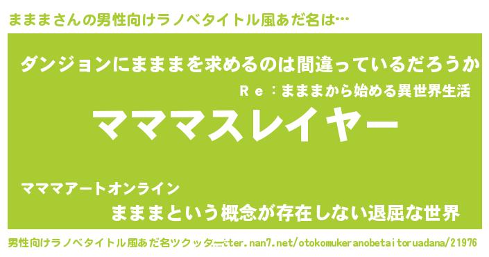 | 胡散臭い通販商品みたいなあだ名 | 『信頼と実績のペンダント…その名も「ままま」』 |