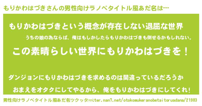 | 胡散臭い通販商品みたいなあだ名 | 『あなたにだけ特別に提供する100年もののヴィンテージワイン…その名も「もりかわはづき」』 |