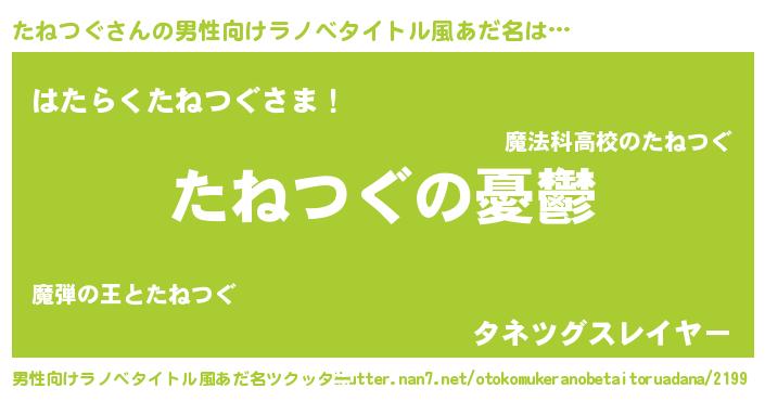 | 胡散臭い通販商品みたいなあだ名 | 『必ず成功するブレスレット…その名も「たねつぐ」』 |
