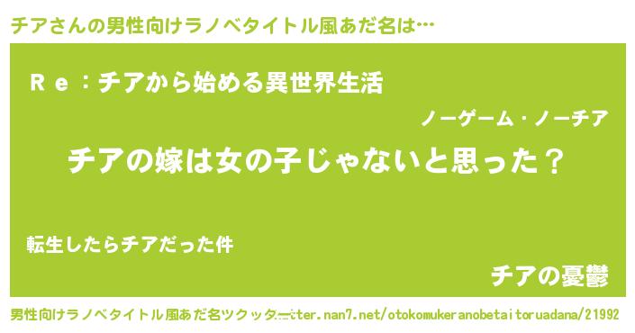 | 女子向けラノベタイトル風あだ名 | 『チア様がみてる』『死神チアの再婚』 |