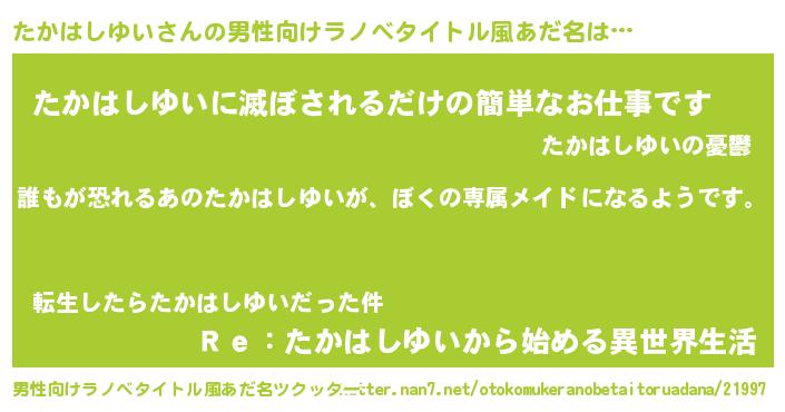 | 女子向けラノベタイトル風あだ名 | 『異世界でカフェたかはしゆいを開店しました。』 |