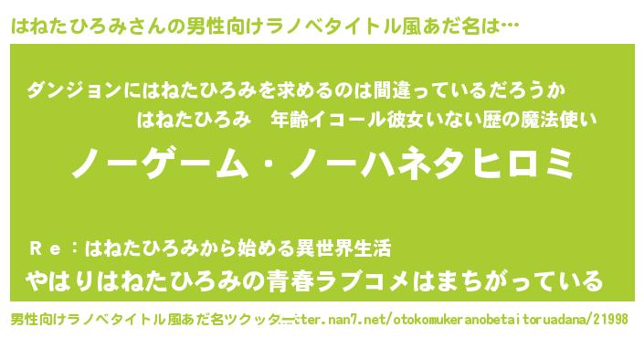 | 女子向けラノベタイトル風あだ名 | 『はねたひろみ恋絵巻』 |