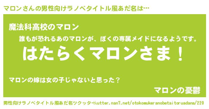 | 意味不明あだ名 | 『自称マロン』『ペロリンマロン』 |