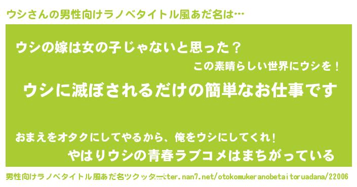 | 胡散臭い通販商品みたいなあだ名 | 『全米が絶賛したサプリメント…その名も「ウシ」』 |