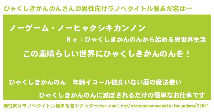 | 意味不明あだ名 | 『住所不定無職ひゃくしきかんのん(84歳)』 |