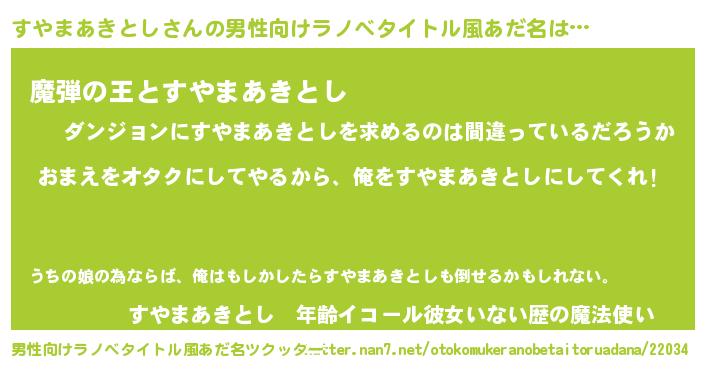 | 女子向けラノベタイトル風あだ名 | 『すやまあきとし夫妻のなれそめ』 |
