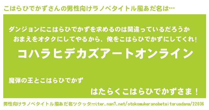 | 女子向けラノベタイトル風あだ名 | 『誰かこのこはらひでかずを説明してください! ~契約から始まるウェディング~』 |