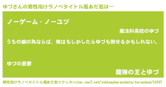 | 女子向けラノベタイトル風あだ名 | 『ゆづ伯爵の花嫁』『死神ゆづの再婚』 |