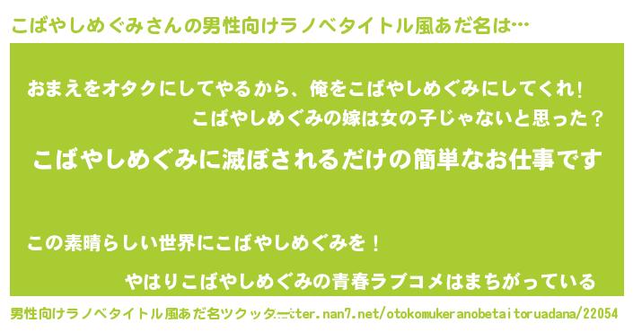 | 女子向けラノベタイトル風あだ名 | 『横柄こばやしめぐみと宰相陛下』 |