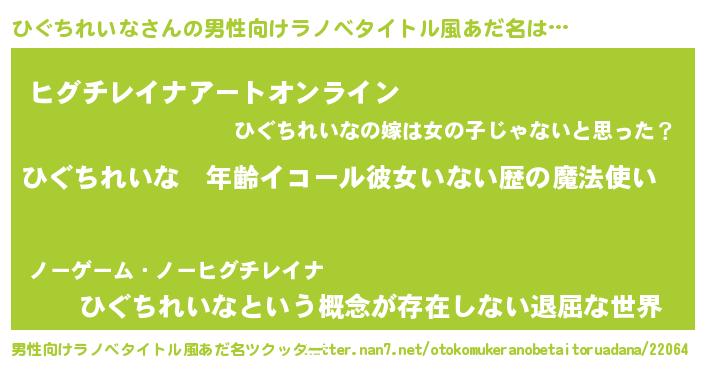 | 女子向けラノベタイトル風あだ名 | 『ひぐちれいなの玉の輿計画!』 |