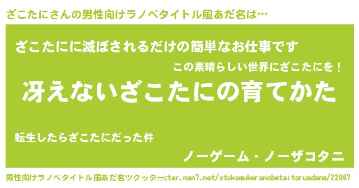 | 女子向けラノベタイトル風あだ名 | 『シンデレラざこたに家の靴箱館』 |