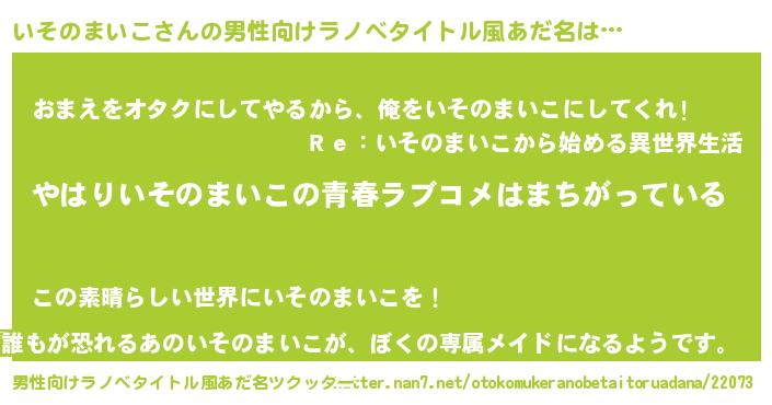 | 意味不明あだ名 | 『いそのまいこフォーエバー』 |