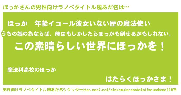| 女子向けラノベタイトル風あだ名 | 『悪役ほっかに転生したようですが、知った事ではありません』 |