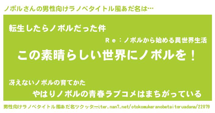 ノボルさんの男性向けラノベタイトル風あだ名をツクッター!