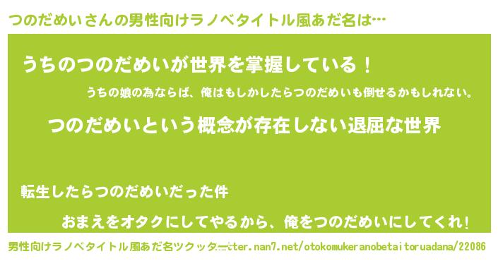 | 女子向けラノベタイトル風あだ名 | 『異世界で失敗しない100のつのだめい』 |