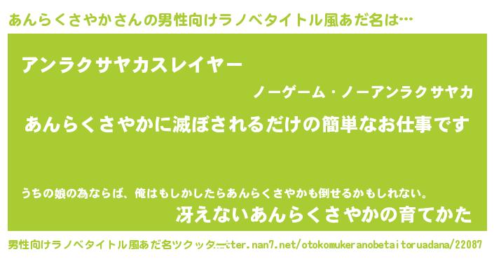 | 欧米人風あだ名 | 『アンジェラ・あんらくさやか』 |